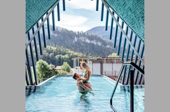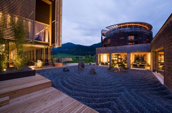 Diese bereits auf den ersten Blick außergewöhnliche Adresse im Bregenzerwald verwöhnt mit romantischen Kuschelsuiten im kreisrunden Blütenschloss, einer topmodernen Wellnessoase, unter anderem mit ganzjährig beheiztem Außenpool mit Liegewintergarten und Wellnesslounge sowie Erlesenem aus Küche und Keller.