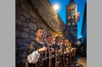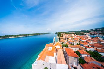 Die Kvarner Insel Rab vereint mehrere Parallelwelten: Familien lieben die sanft ins Meer übergehenden Sandstrände, Campingplätze und herzlichen Gastgeber:innen. Aktivurlauber:innen finden unzählige Möglichkeiten, die abwechslungsreiche Naturlandschaft sportlich zu entdecken. Und für Mittelalterfans ist das jährliche Sommerfest „Rabska Fjera“ quasi Pflicht. Die Raber Altstadt lädt zum Verweilen ein und präsentiert sich mit vier markanten Glockentürmen, verwinkelten Gassen, schmalen Treppen, Klöstern, Kirchen und steinernen Palästen.