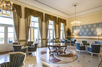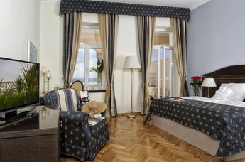 Im Stil der Belle Epoque 1895 erbaut und nach umfangreicher Renovierung 2014 in der Holleis-Hotelgruppe neu eröffnet, versetzt das Grand Hotel seine Besucher in eine andere Zeit. 114 stilvolle Zimmer und Suiten vereinen mondänen k.-u.-k.-Schick mit zeitgemäßem 4-Sterne-Komfort. Eleganter Wellnessbereich mit finnischer Sauna, Behandlungsangebot, Hallenbad und beheiztem Salzwasser-Außenpool lädt zum Entspannen ein.