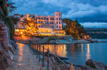 Das 4-Sterne-superior-Resort knüpft an jene glanzvollen Zeiten an, als die altösterreichische Riviera Treffpunkt der k.u.k.-Monarchie war. Noch heute prägen hunderte Villen und prachtvolle Parkanlagen diese klimatisch begünstigte Küstenlandschaft südwestlich von Rijeka. Das Hotel liegt direkt am legendären Lungomare, einem historischen, 12 Kilometer langen Uferpromenadenweg und bietet ganzjährig hochwertige Spa-Behandlungen, einen Wellnessbereich sowie ein umfangreiches Sport- und Aktivprogramm. Die leichte, mediterrane Küche mit österreichischen Einflüssen sorgte seit Anfang an für große Beliebtheit unter den Gästen.