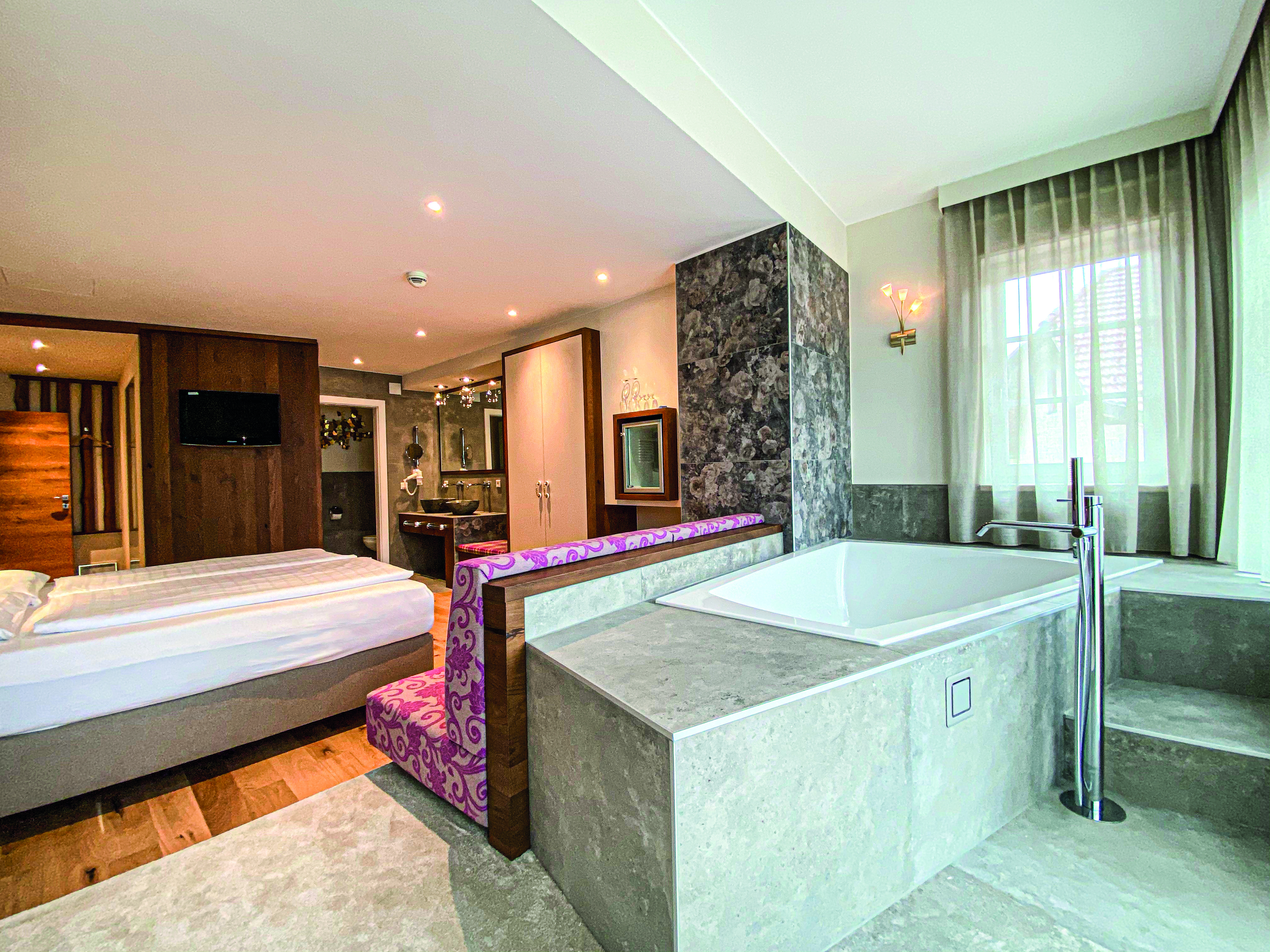 Im Mittelpunkt des neuen WaldSPA steht der In- und Outdoorpool. Der liebevoll angelegte Garten beherbergt eine Holz-Außensauna und viele kuschelige Entspannungsplätze. Der Duft frischer Kräuter aus dem eigenen Garten führt direkt in die Saunalounge mit einem SOLEUM Tee- & Sole-Dampfbad. Naturmaterialien sind die Hauptakteure und der Wald gilt als Vorbild für Erholung und Entspannung. Das SPA-Team verwöhnt mit einem ganzheitlichen Energie-Massage- & Kosmetik-Angebot.
