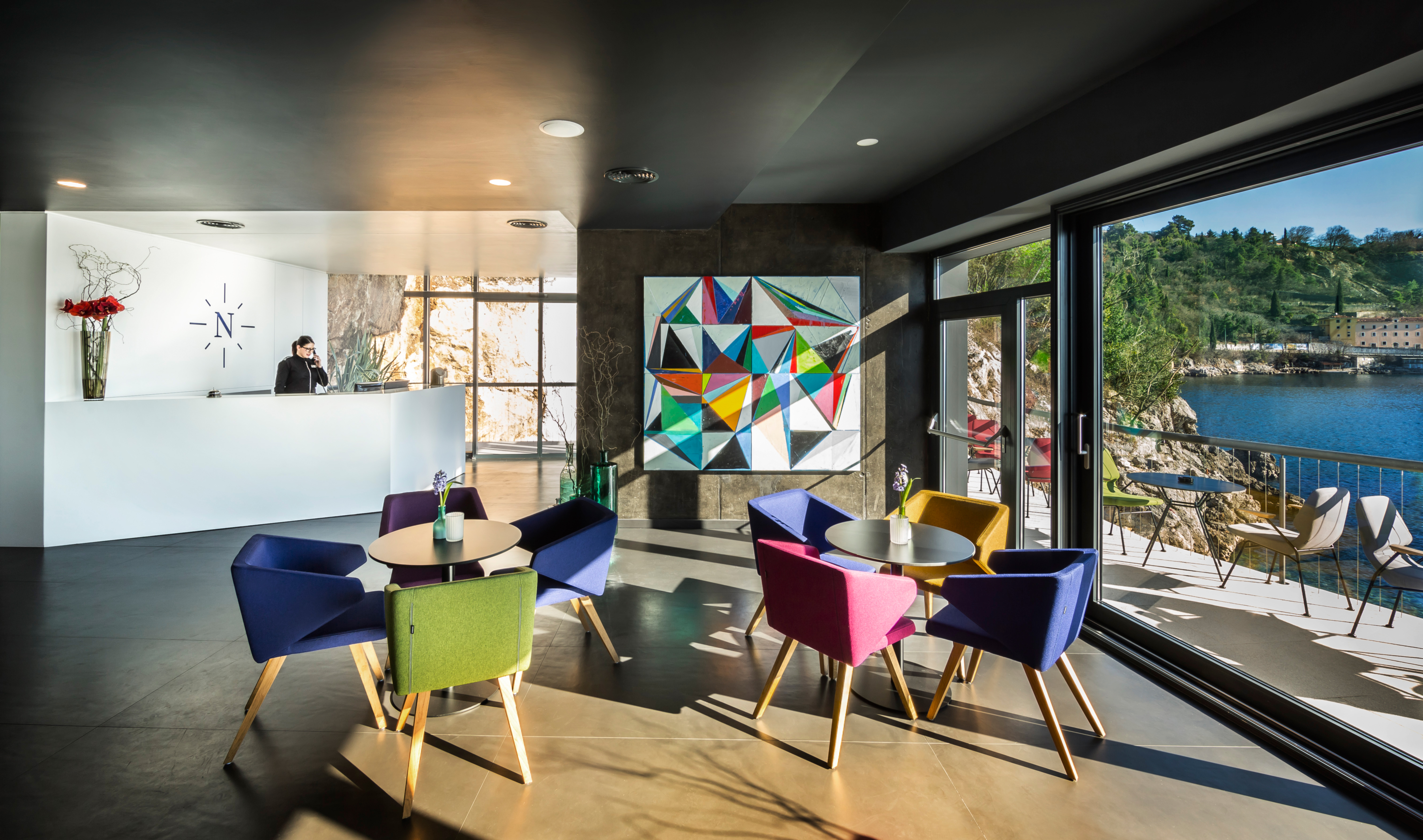 Es wurde vom kroatischen Star-Architekt Idis Turato detailliert gestylt und gilt als Kontrastidee zur typischen k.u.k. Stilistik der Opatija-Riviera. Wie ein Schwalbennest schmiegt sich das 5-Sterne-Hotel an einen schmalen, steilen Küstenstreifen – etwas versteckt in der Preluk-Bucht zwischen der k.u.k. Küstenstadt Opatija (Abbazia) und der Hafenstadt Rijeka.