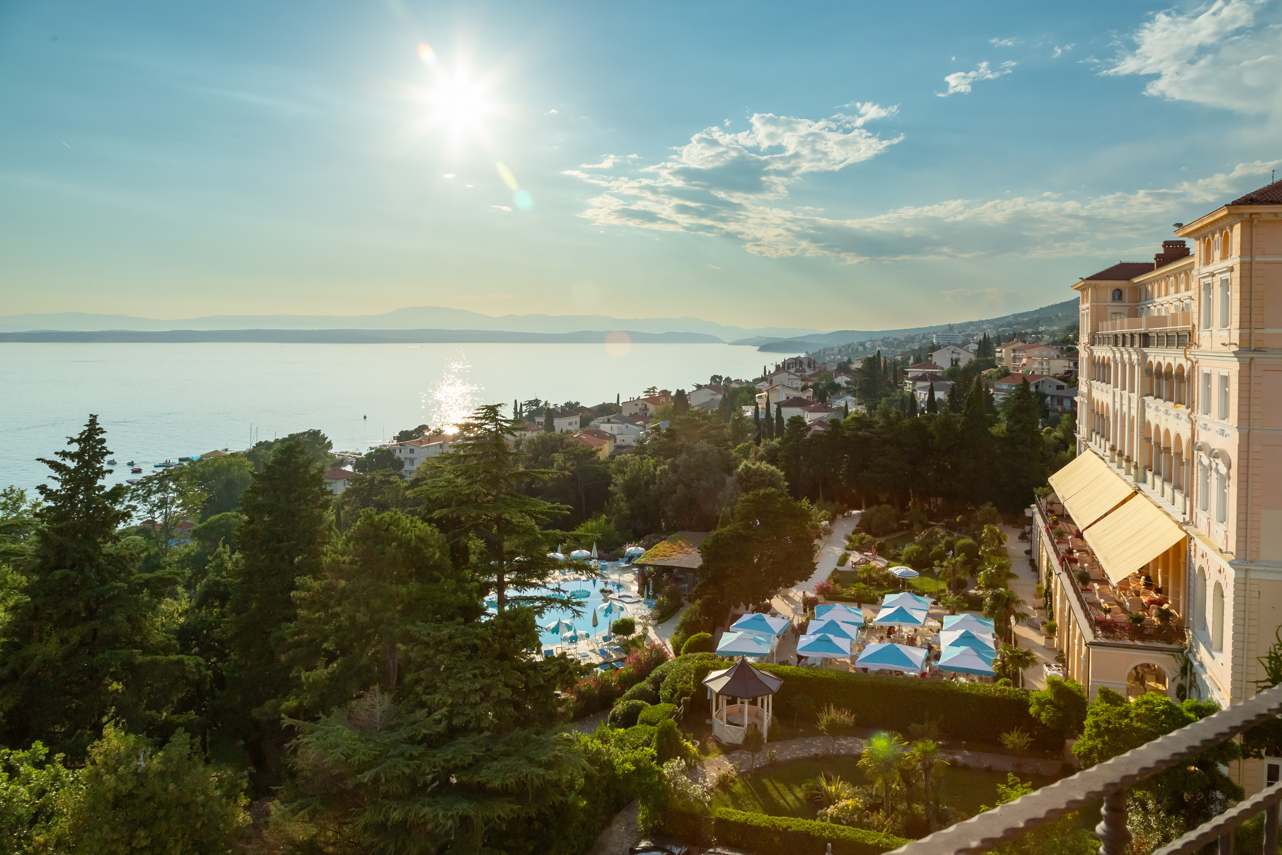 Das Hotel Kvarner Palace der Salzburger Hoteliersfamilie Holleis empfängt seine Gäste in stolzer, erhabener Küstenlage, mit einem 30.000 m2 großen, mediterranen Park und fantastischem Blick über die Kvarner Bucht.