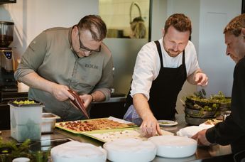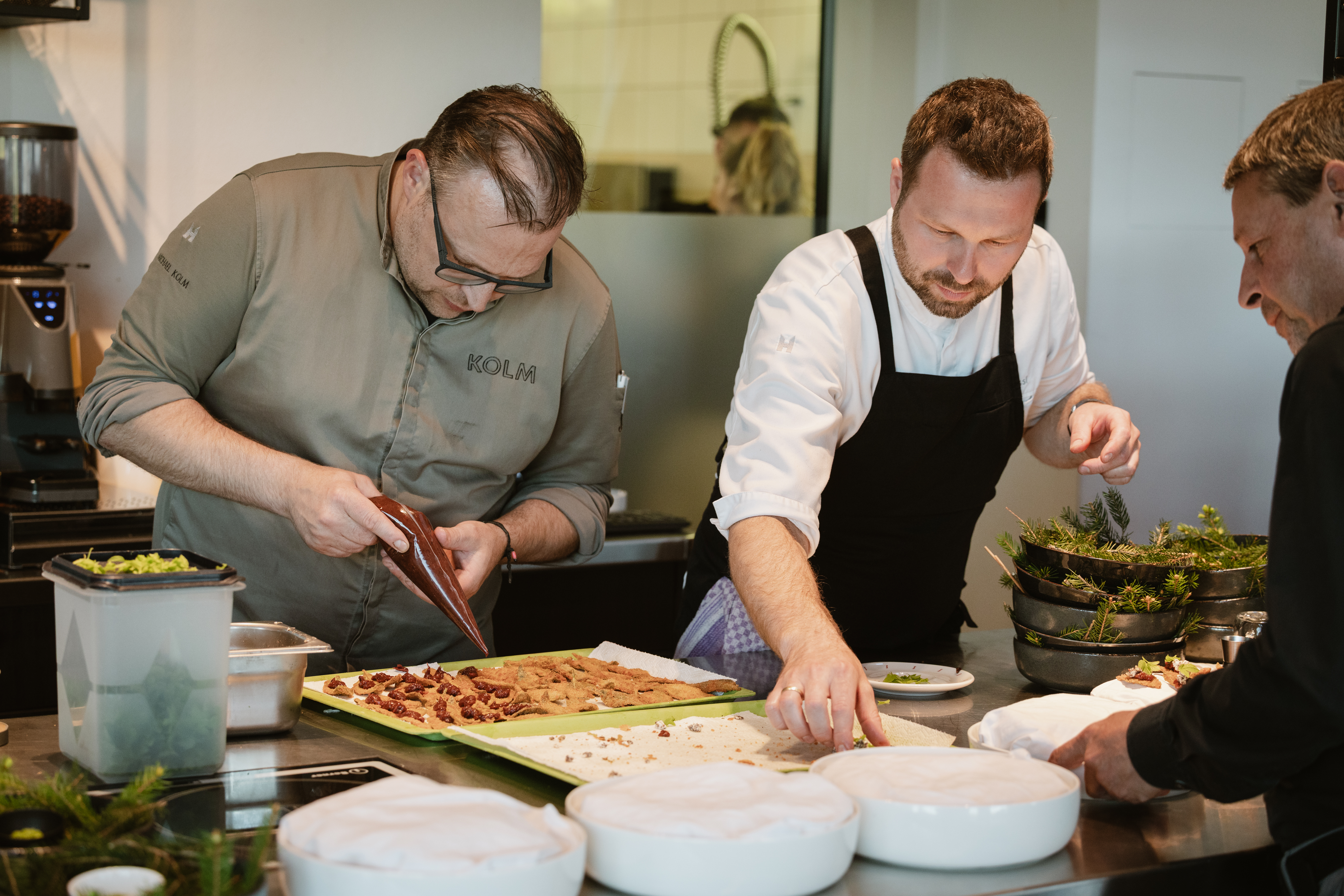 Bei Michael Kolm im Restaurant Kolm in Arbesbach fand der Koch.Campus seinen ebenso geselligen wie kulinarisch spannenden und gewohnt exquisiten Ausklang. Gemeinsam mit Philipp Essl vom Landgasthaus Essl wurden wahre Signatures kreiert, darunter Grammelknödel mit Marillen-Chili-Kraut und Selleriespeck, Blunzn Foccacia mit Gurkerl Relish und Senfcreme, Litschauer Maibock mit Erdäpfel und Waldviertler Pilzen oder die Wachauer Gateau – eine Eigenkreation der Wachauer Torte. Durch den Abend begleitete die Winzergruppe respekt-BIODYN.