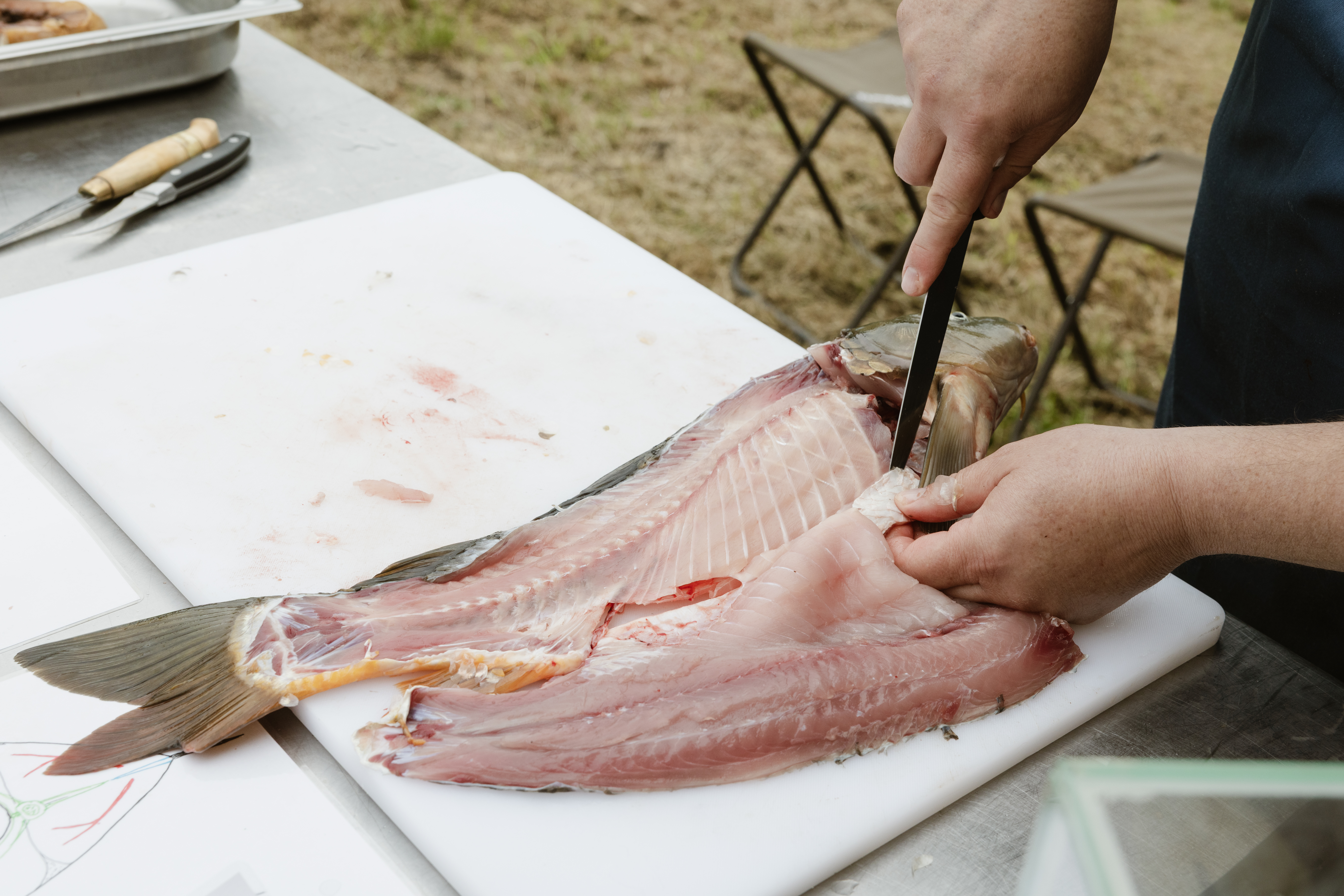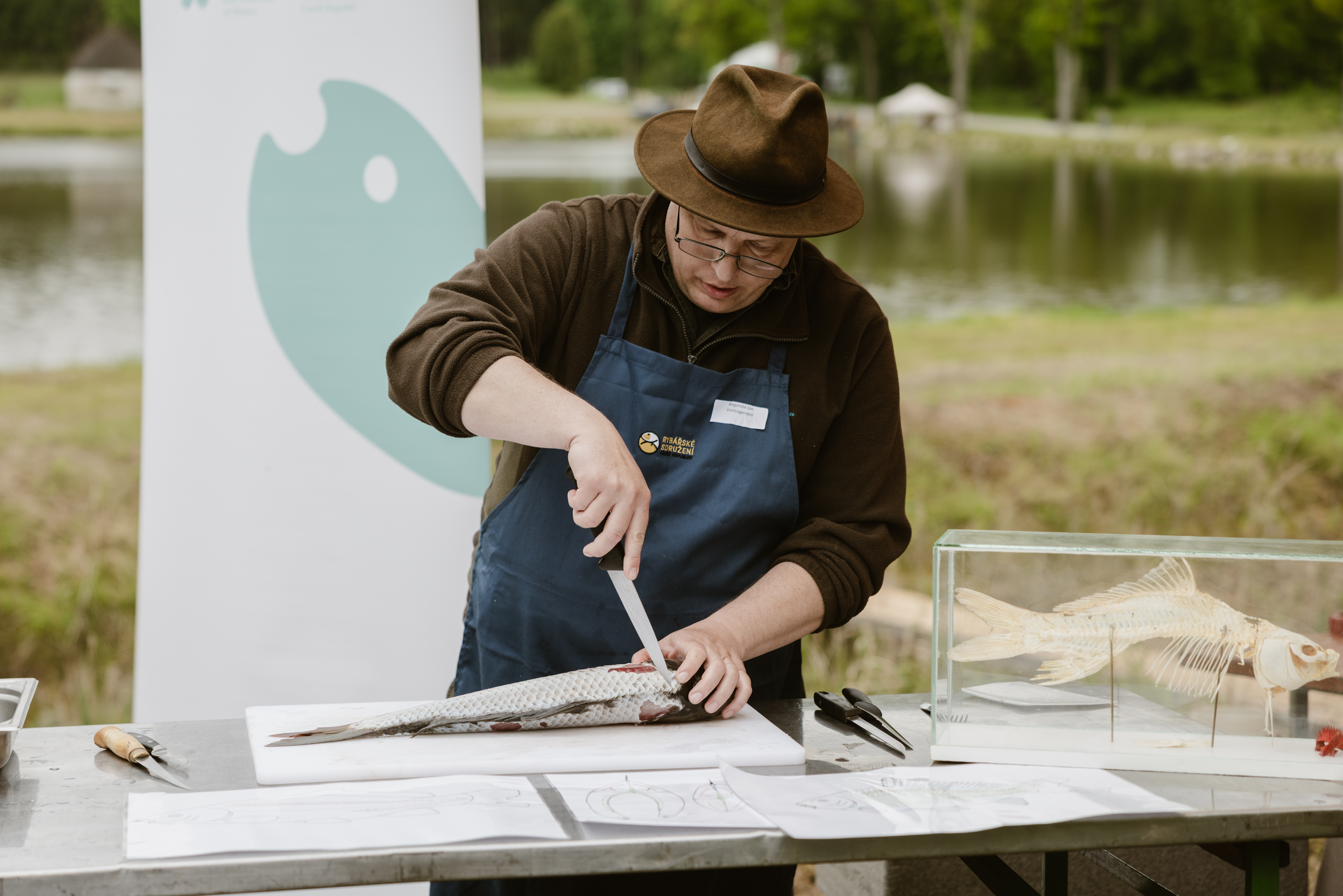 Dr. Ján Regenda lehrt an der Fakultät für Fischerei und Gewässerschutz an der Südböhmischen Universität in České Budějovice, brachte den Teilnehmer:innen des Koch.Campus die Anatomie des Karpfens näher und gab Tipps für ein grätenfreies Genießen.