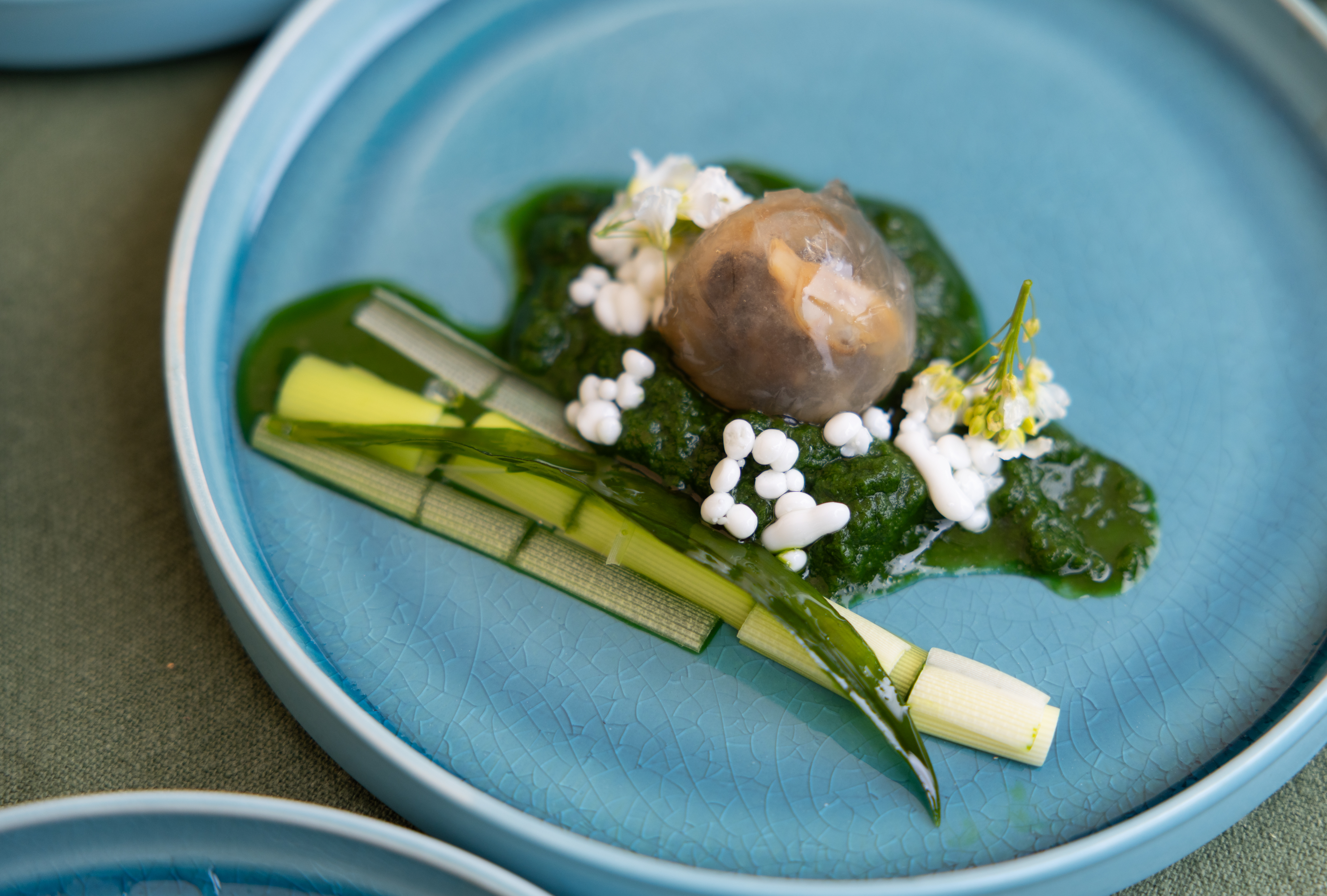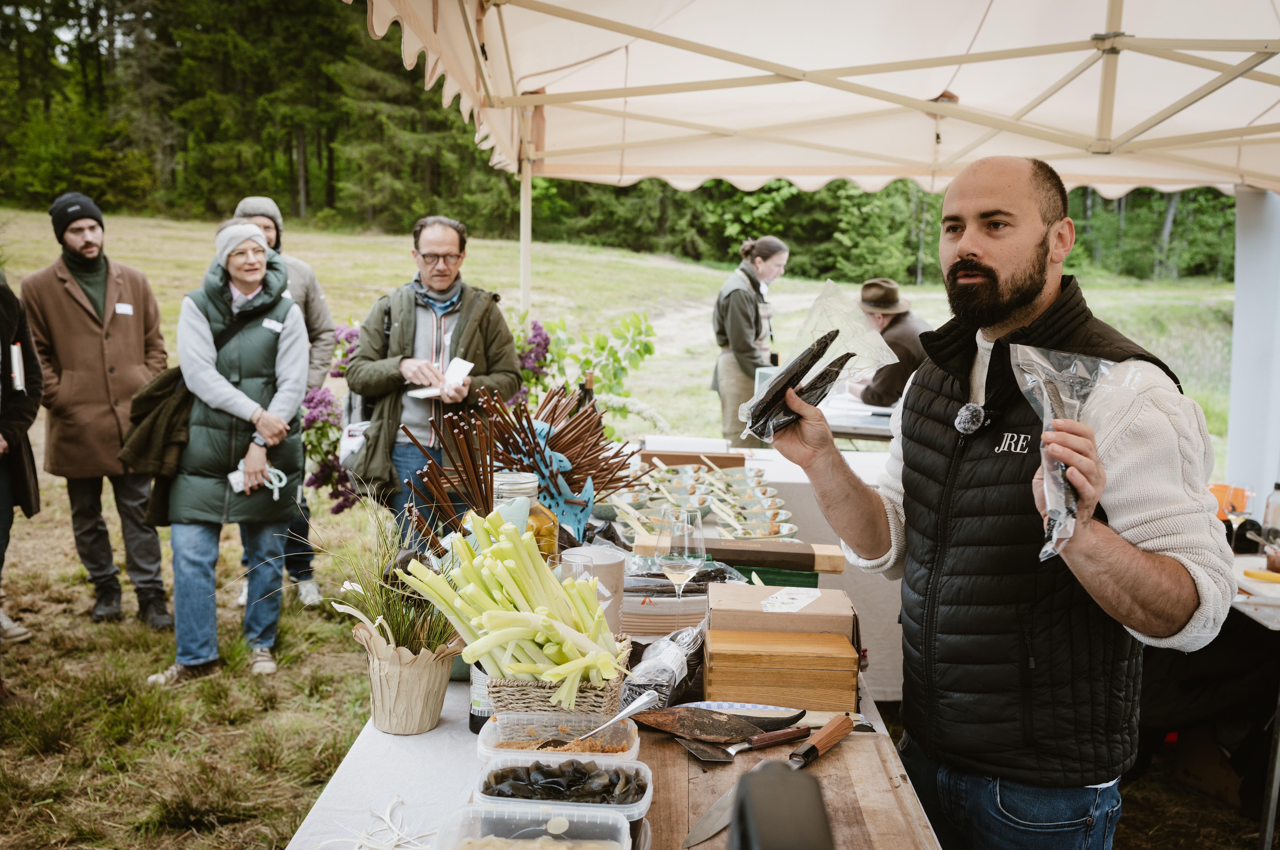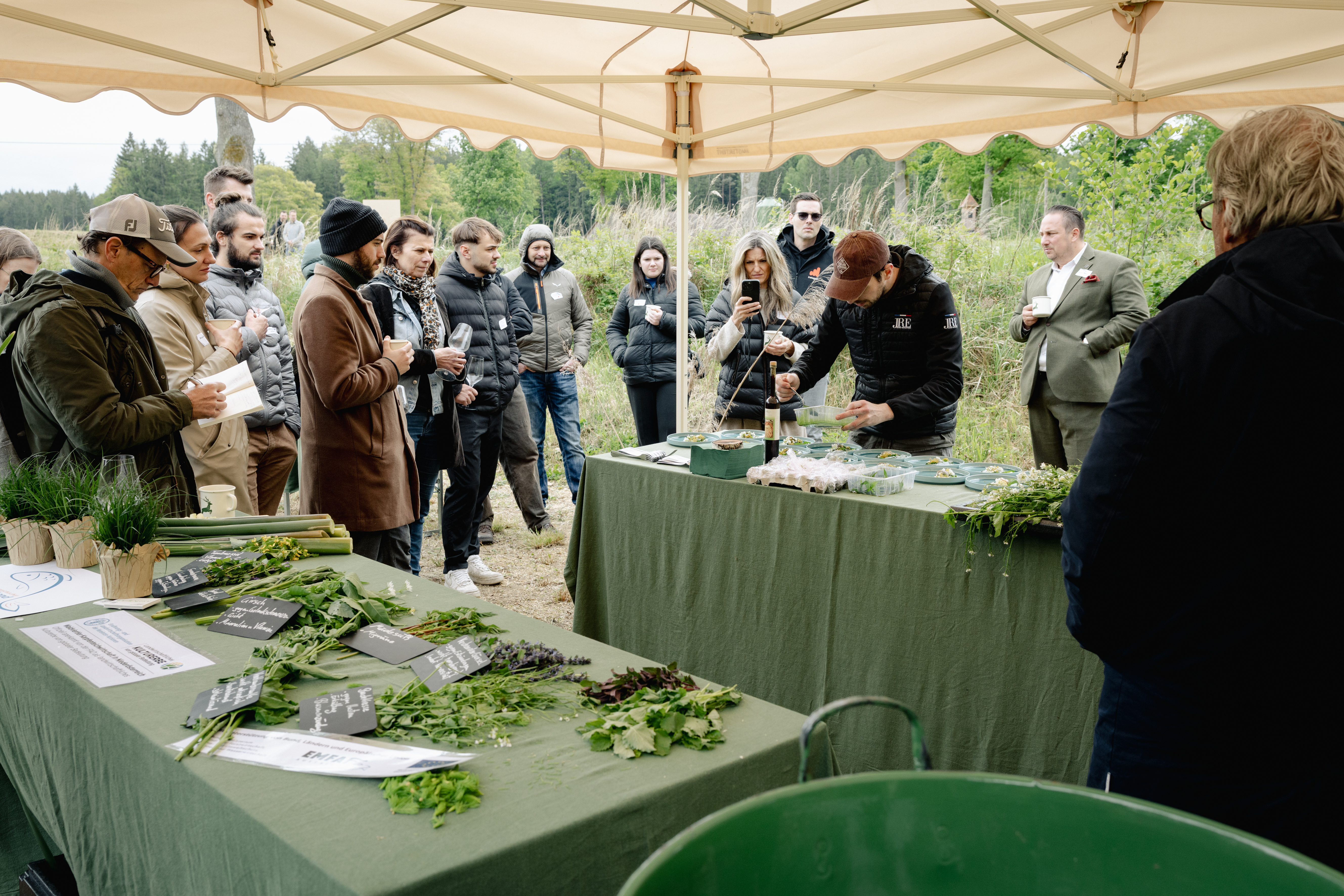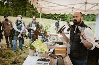 Sternekoch Klemens Rau erzählte von ressourcensparenden Methoden in seiner nature based cuisine im Restaurant RAU im oberösterreichischen Großraming. Serviert wurden unter anderem Schnecken mit Brunnenkresse und Rohrkolben, auch als Wassergurke bekannt. Begleitet von einem Natural Wine, dem Materia Prima vom Weingut Fritsch und einem Welschriesling des Weingutes Zillinger.