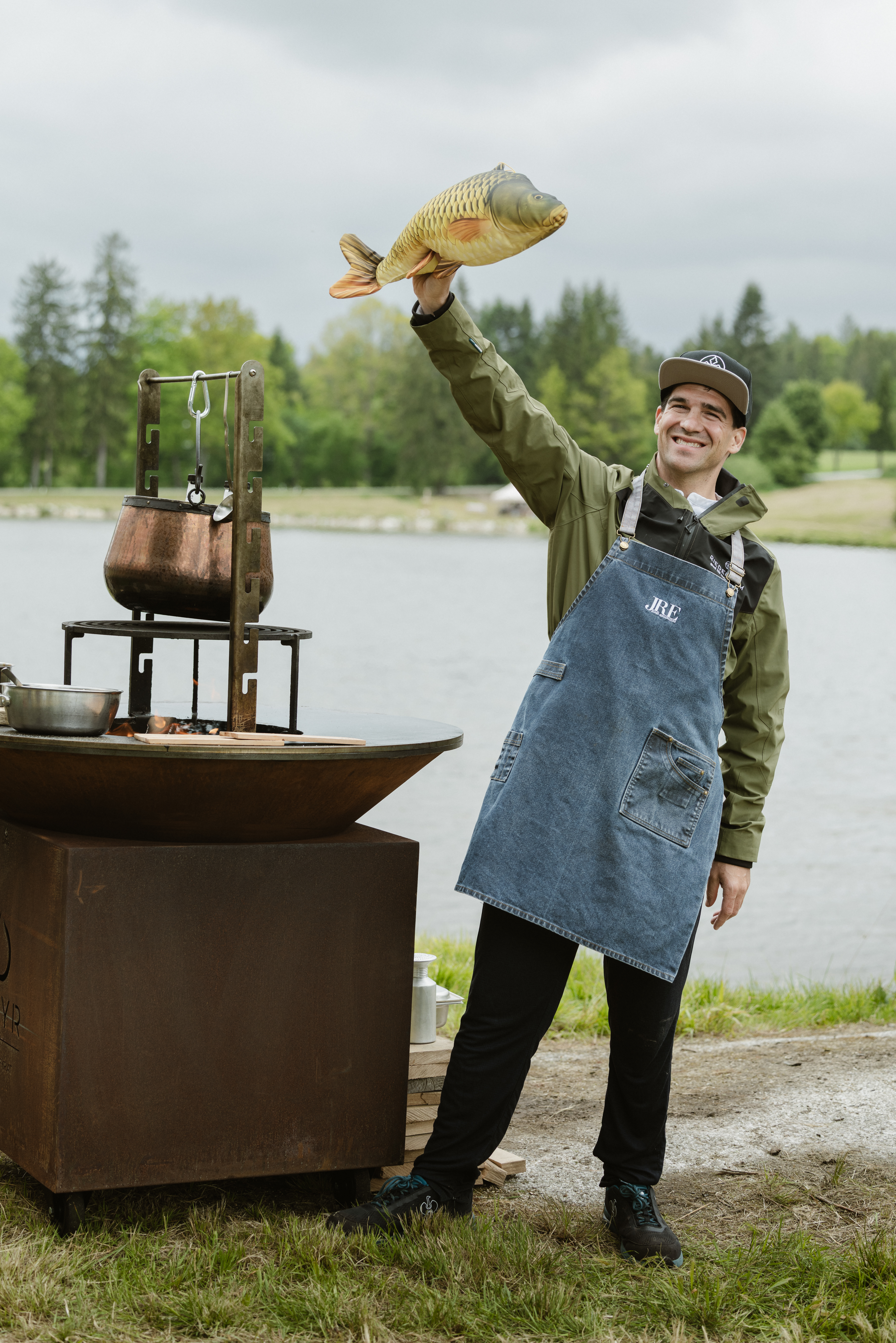 Sternekoch Andreas Herbst vom Restaurant dahoam in der Pinzgauer Riederalm servierte zwei Gänge: Zum einen am OFYR zubereitete Karpfen-Bosna mit fermentiertem Paprika und Sauerampfer – fein abgestimmt mit edlen Tropfen der Weingüter Heinrich und Sattler. Zum anderen ein Karpfengulasch mit Miniroggenspätzle, Zwiebelmarmelade und Wildkräutersalat. Begleitet vom Weingut Ott und einem Kalterersee Keil 2023 vom Südtiroler Weingut Manincor.