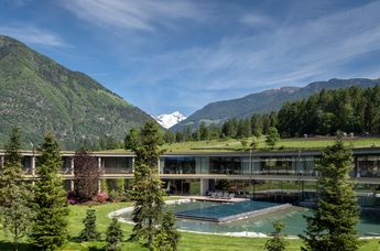 Zum Wellnessangebot zählen ein Naturbadeteich im Innenkreis, ein Indoorpool mit beheiztem Außensportbecken sowie ein Adults-only-Saunabereich. Die 33 ApartSuiten – ganz in Lärchenholz, viel Glas und natürlichen Materialien – lassen Innen- und Außenraum fließend ineinander übergehen. Eine urbane Alm, die den Rhythmus der Natur spürbar macht.