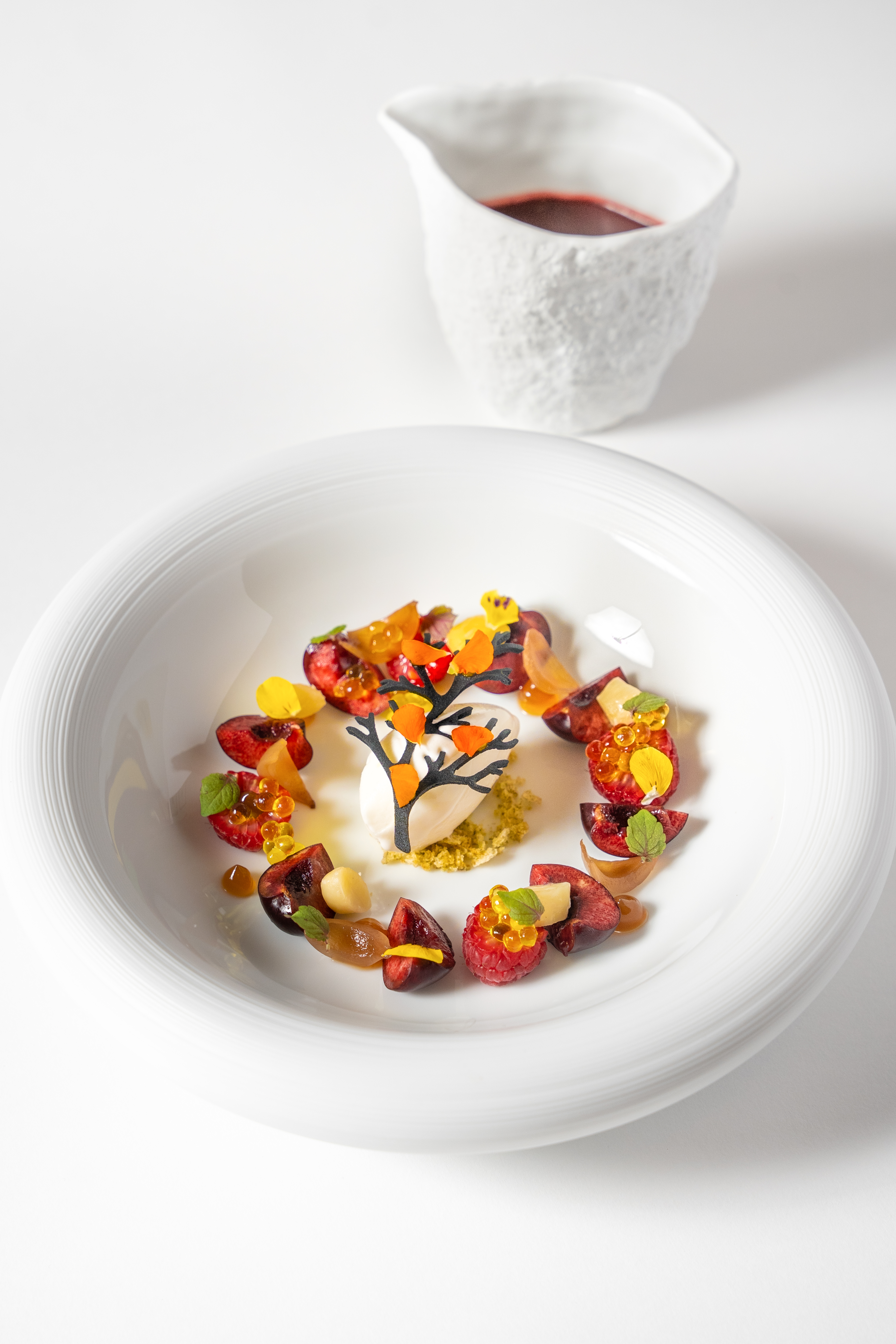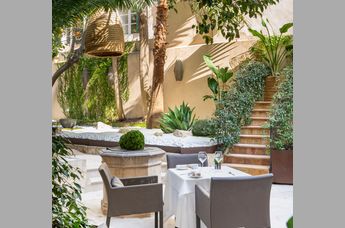 Bei schönem Wetter lädt auch der zauberhafte Garten ein, Petutschnigs Gerichte zu genießen. Er und sein Team verwöhnen mallorquinische und internationale Besucher mit fein komponierten Degustations-Menüs sowie raffinierten Speisen à la Carte wie etwa Simmentaler Rind mit knusprigen Nori-Algen, Trüffel und Olivenöl. Und selbstverständlich einer handverlesenen Auswahl feiner Weine.