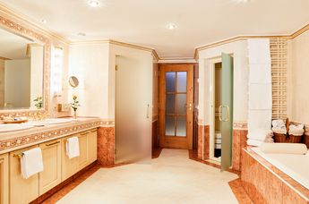 Zirbenduft durchströmt die großzügige Wellness-Gartensuite mit 100 m2, die mit Interieur aus Zirbenholz eine angenehme Atmosphäre schafft. Die klimatisierte Dreiraum-Suite lädt ein, dem sanften Prasseln des Kaminfeuers zu lauschen oder den Ausblick auf den prächtigen Hotelgarten und den Hausberg von Zell am See – die Schmittenhöhe – vom Balkon zu genießen. Das Badezimmer ist mit Wanne samt Fernseher und einer Dampfsauna mit Farblichttherapie ausgestattet.