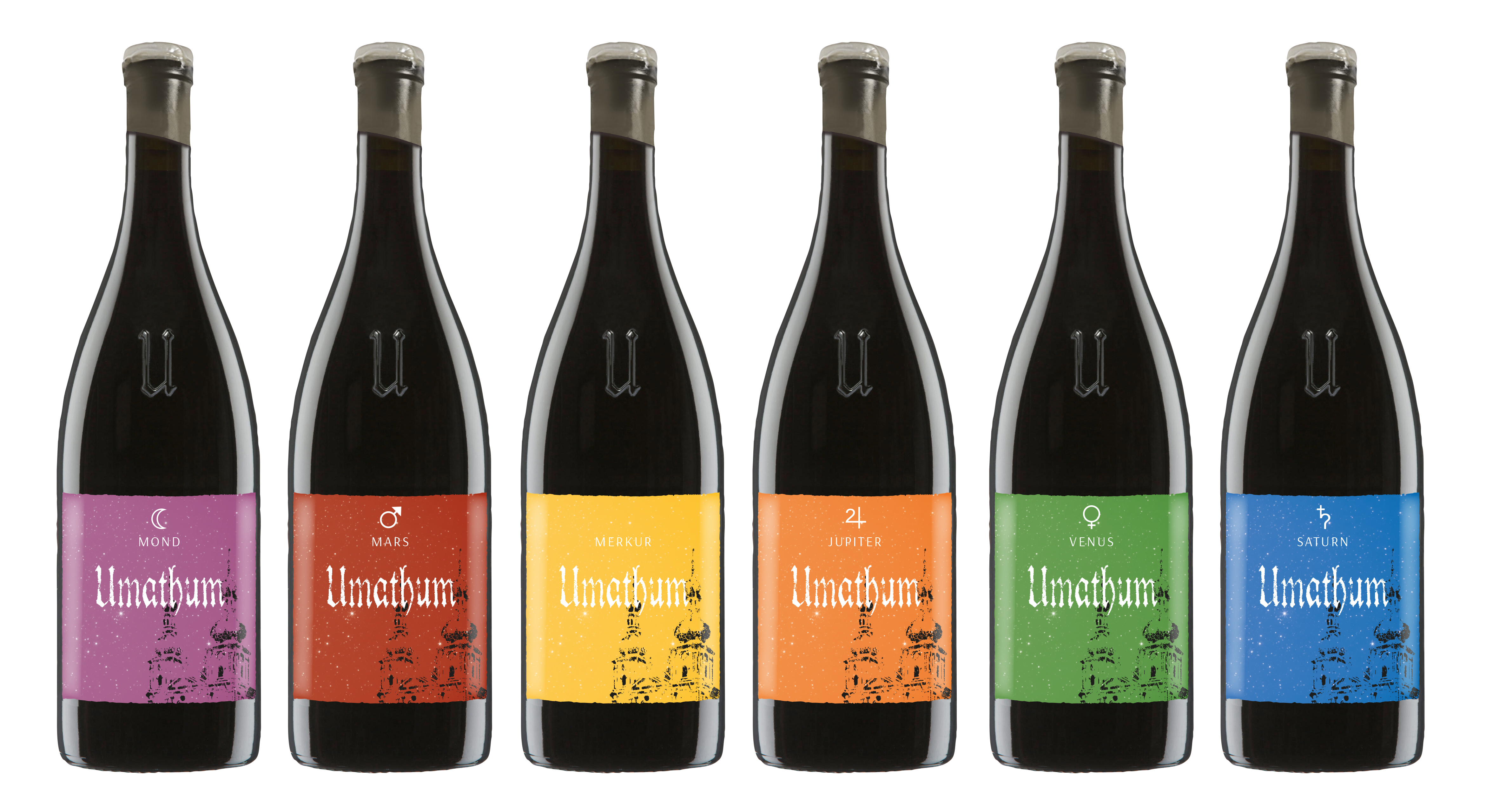 Mit „Junge Wilde" präsentiert er sechs PIWI-Sorten, die nach Planeten benannt sind. Venus, Saturn, Merkur, Jupiter, Mars und Mond – jeder Wein trägt die Eigenschaften seines Namensgebers, verbunden mit Kräutern, Getreide und der Idee, dass aus einem einzelnen Traubenkern etwas Großes entstehen kann. So wie aus einer Zelle ein ganzer Planet geboren wird.
